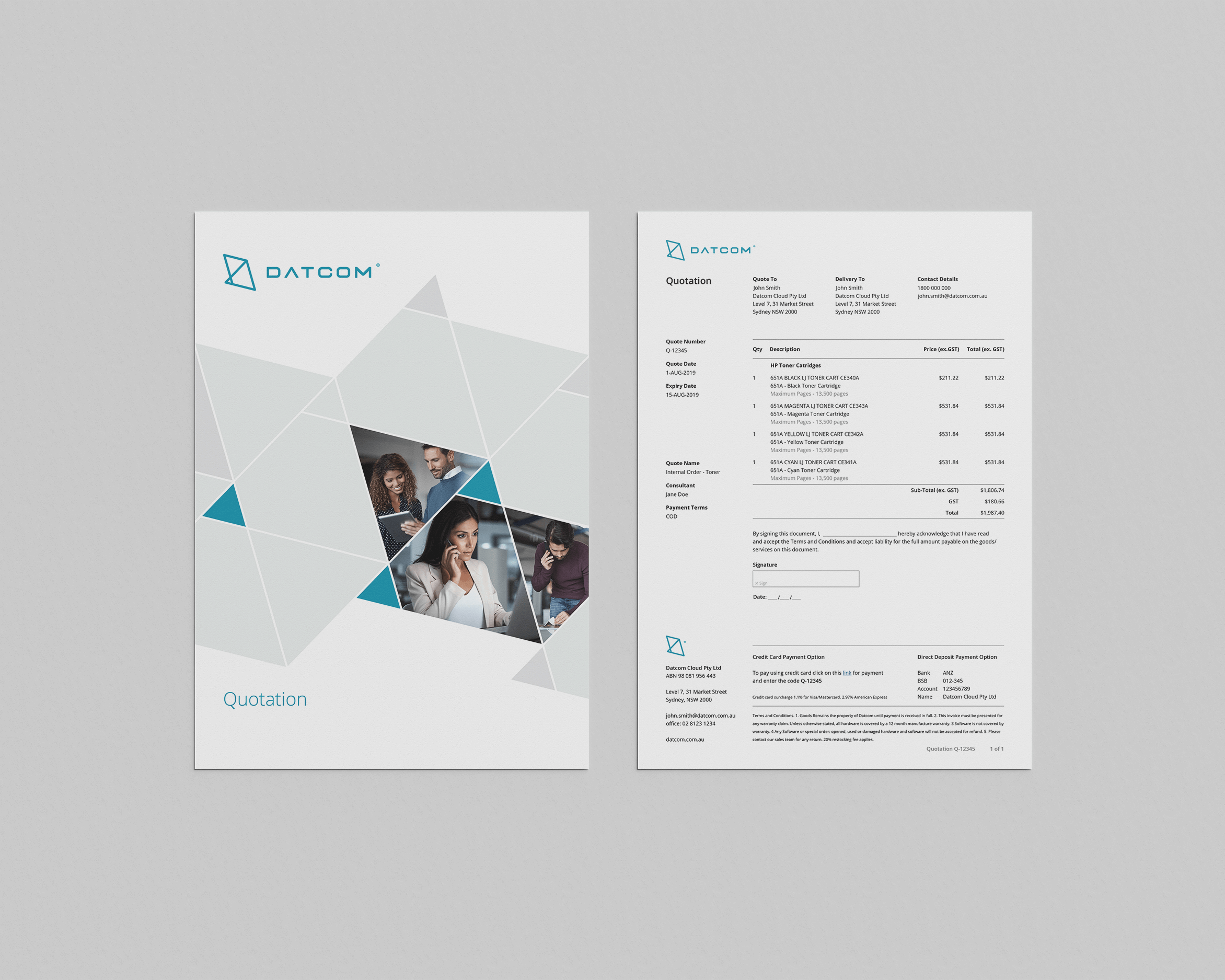 Fluidx also provided brand assets for Datcom Cloud to apply across business cards, sale templates, car decals and uniforms, in order to stay consistent with the new website and marketing materials.